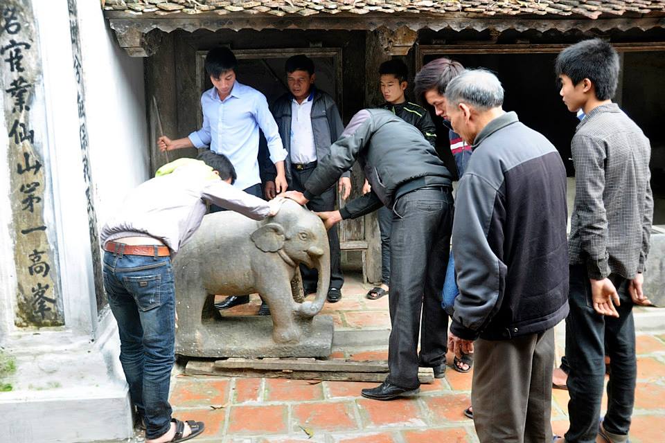 Chuyển Voi đá ra giữa sân gạch