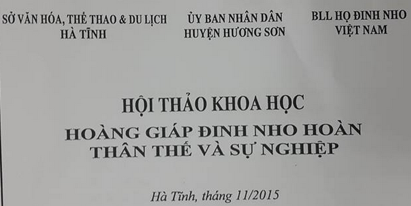 Trong thời gian vừa qua, dòng họ Đinh Nho ở Hương Sơn - Hà Tĩnh đã tích cực triển khai công tác chuẩn bị cho Hội thảo "Hoàng giáp Đinh Nho Hoàn - Thân thế và sự nghiệp" được tổ chức vào ngày 13-14/11/2015. Tính đến ngày 03/7/2015, Tiểu ban nội dung đã nhận được các bài tham luận tham gia trong Hội thảo và đã tổng hợp lại như dưới đây. Xin được chia sẻ cùng bà con gần xa: