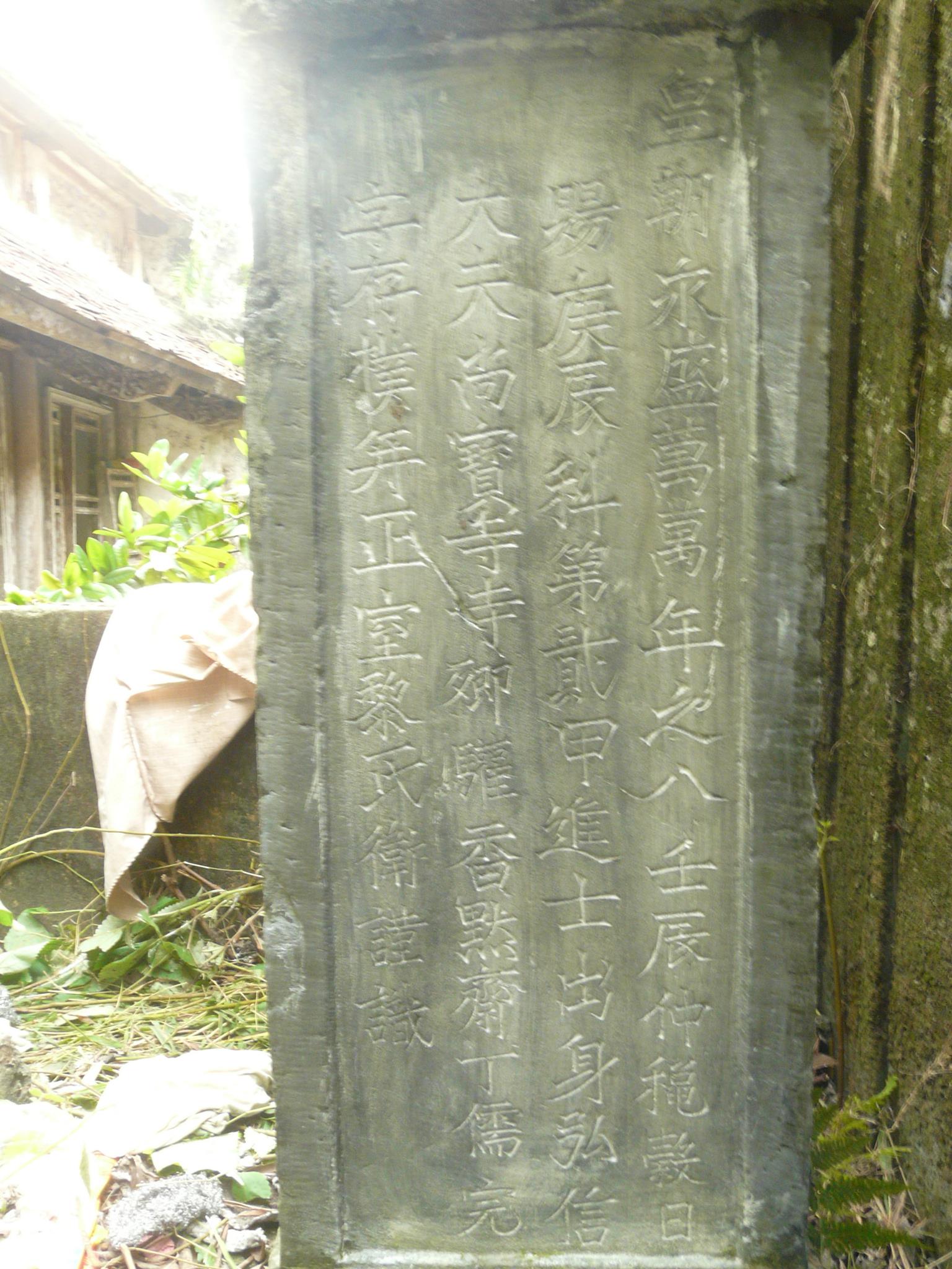 2. Thời gian viết văn bia là các năm Vĩnh Thịnh thứ tư (Mậu Tý 1708), Vĩnh Thịnh thứ năm (Kỷ Sửu 1709) và Vĩnh Thịnh thứ tám (Nhâm Thìn 1712) cùng với bài Minh khắc trên KHÁNH MẶC TRAI.