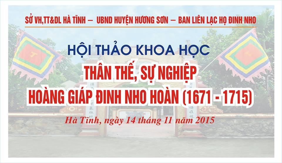 Vậy là Hội thảo: "Hoàng giáp Đinh Nho Hoàn - Thân thế và sự nghiệp" đã đến ngày cận kề, chỉ còn hơn một tuần nữa là Hội thảo được diễn ra tại Hương Sơn - Hà Tĩnh. Trước tiên, với vai trò là một người con, người cháu của dòng họ Đinh Nho, xin được chia sẻ niềm vui sướng, sự tự hào và lòng biết ơn sâu sắc đối với Tiên Tổ cùng toàn thể bà con dòng họ ta đồng thời xin được gửi lời cảm ơn tới tất cả bà con dòng họ Đinh cả nước cũng như các bạn bè gần xa đã có sự quan tâm và giúp đỡ cho Hội thảo sắp tới. Sau đó xin được thông báo tới toàn thể bà con những công tác cập nhật mới nhất mà cháu vừa nhận được từ bác Tộc trưởng để bà con nắm rõ tình hình và thu xếp thuận lợi nhất cho chuyến hành hương về nguồn cội sắp tới.