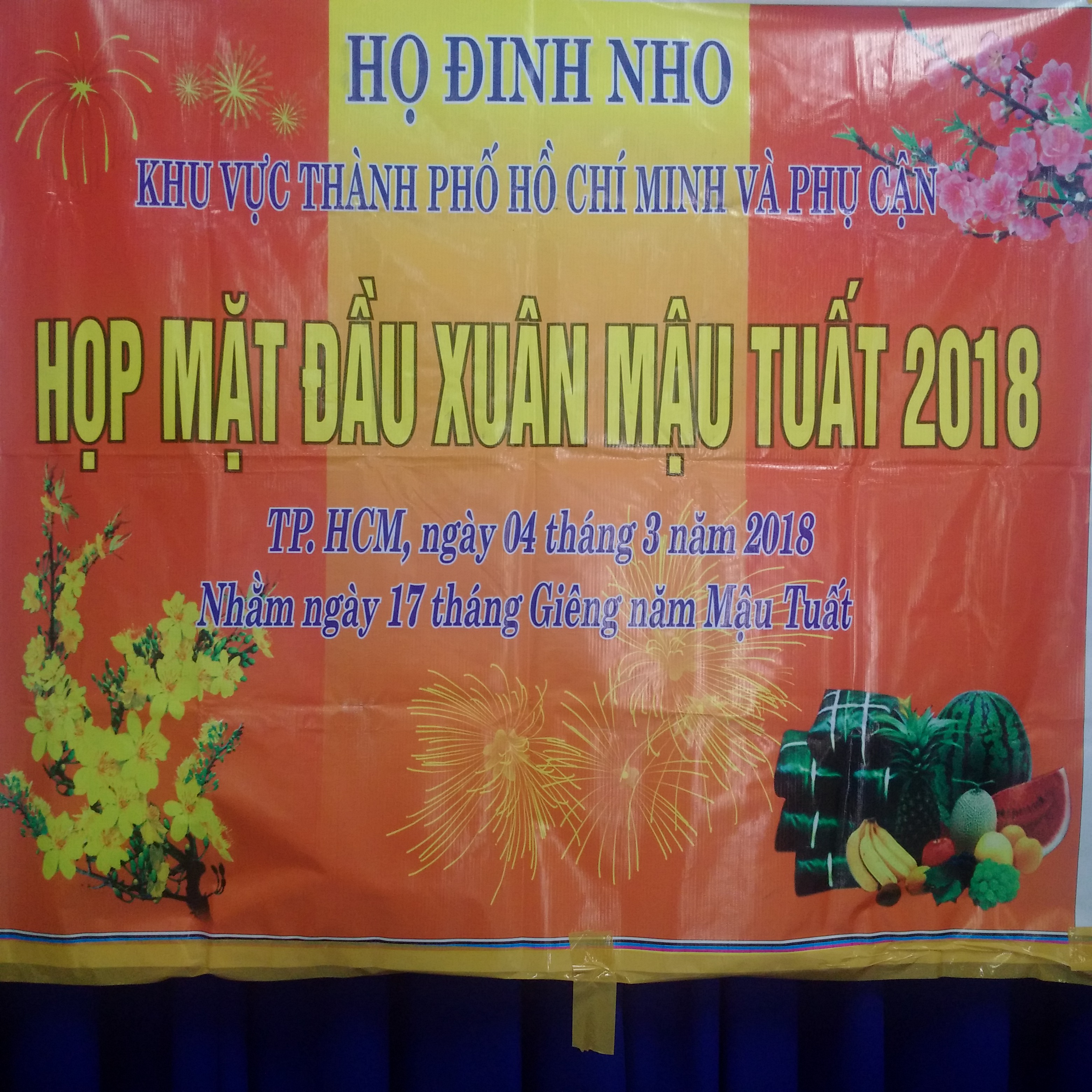 Như thường niên, Ban liên lạc họ Đinh Nho khu vực phía Nam lại tổ chức buổi họp mặt đầu Xuân năm mới để bà con chúng ta được gặp gỡ nhau trao đổi, chia sẻ cùng nhau những buồn vui trong 1 năm vừa qua. Đây cũng là thời điểm để Ban liên lạc thông báo cùng bà con những hoạt động trong năm 2017 cũng như các hoạt động dự kiến sẽ triển khai trong năm 2018 này.