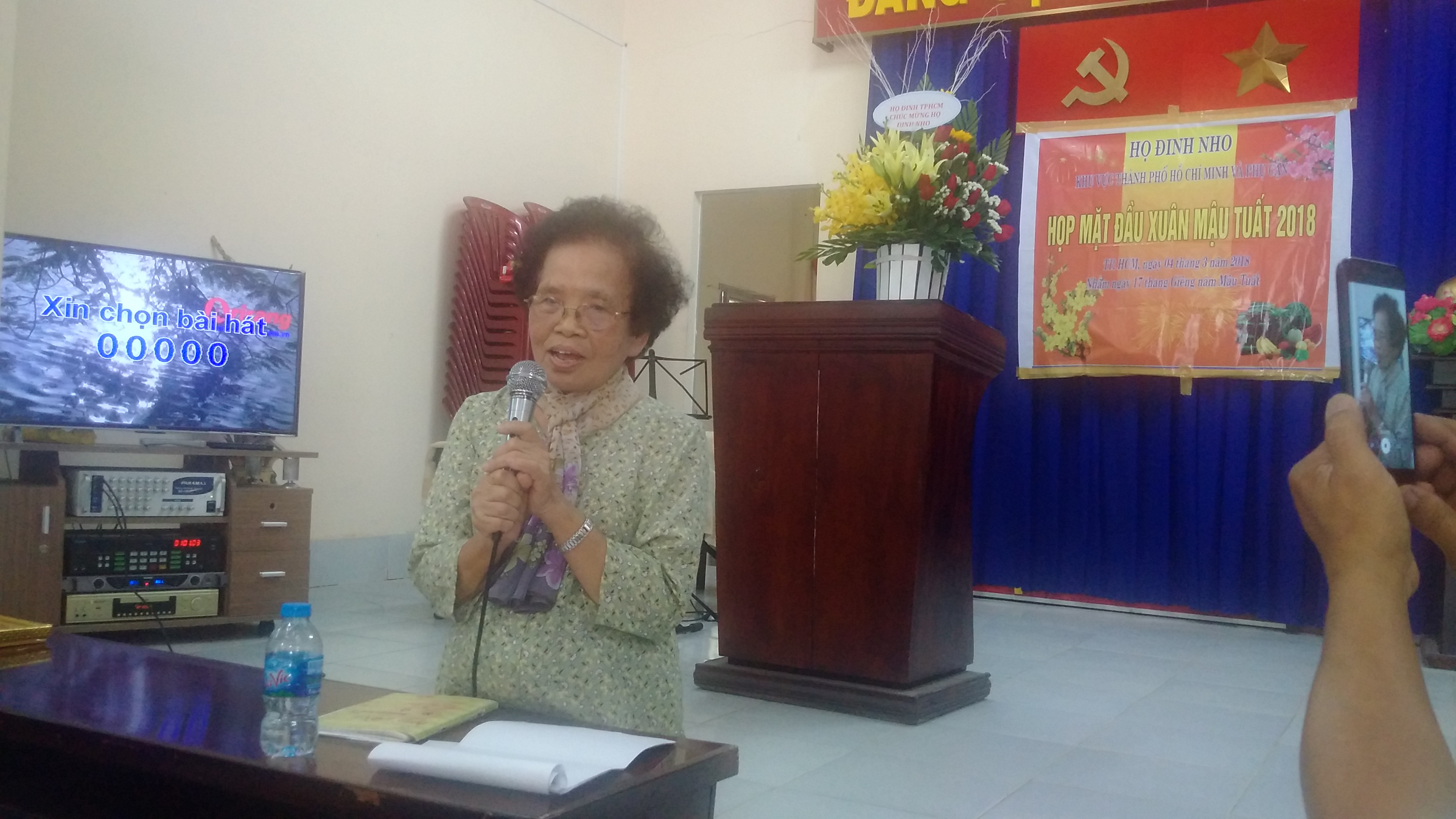 Tiếp đó, Ông Đinh Nho Lữ thay mặt cho Ban liên lạc họ Đinh Nho khu vực phía Nam báo cáo tổng kết những hoạt động trong năm qua của dòng họ, đọc thư chúc Tết của Tộc trưởng Đinh Nho Quỳ gửi từ quê hương Sơn Hòa vào chúc Tết bà con và trình bày kế hoạch hoạt động của Ban liên lạc trong năm mới.